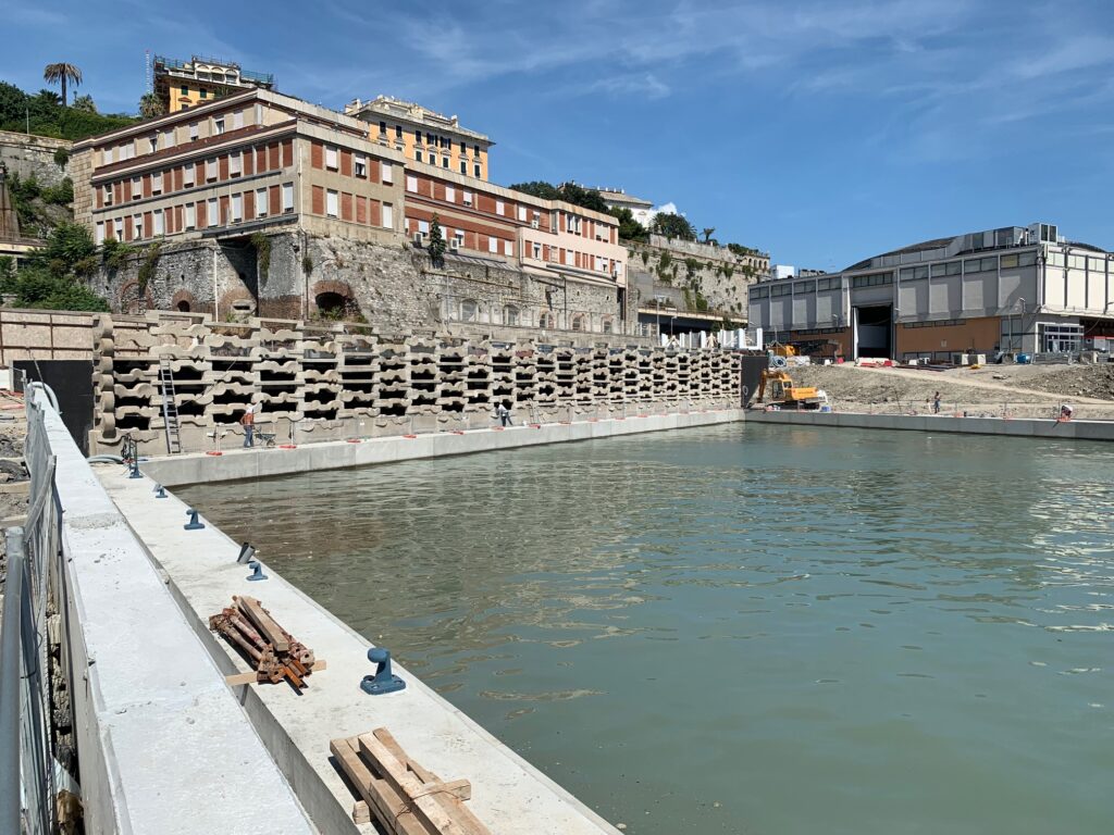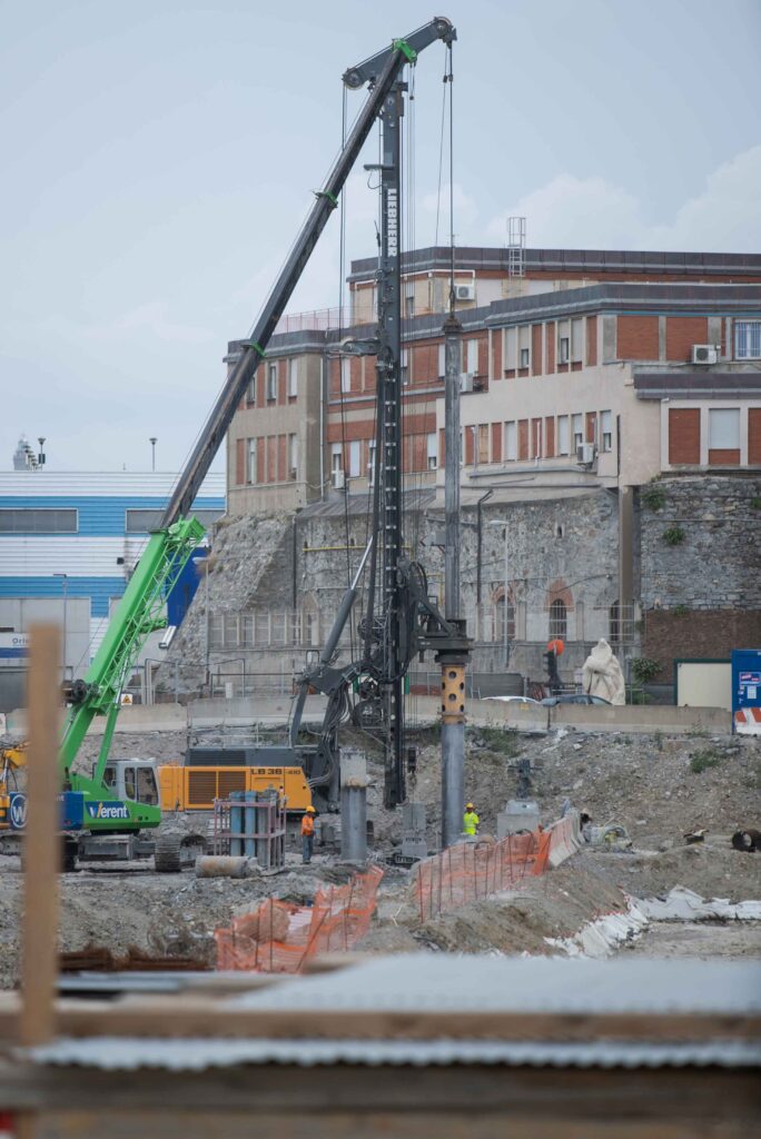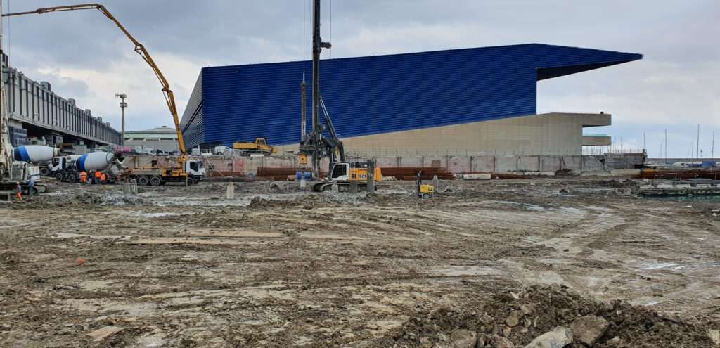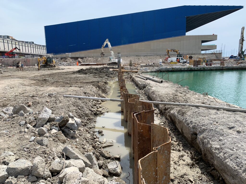 L’intervento in oggetto consiste nella realizzazione di paratie di pali trivellati come pareti dell’allargamento del canale navigabile e della paratia di micropali a sostegno della strada di Via dei Pescatori. L’ampliamento della darsena, che termina subito a valle della strada, ha reso necessaria la demolizione dell’edificio “Nira”. L’intervento è articolato nell’esecuzione di n. 3 paratie di pali secanti di grande diametro, che costituiscono le pareti dell’ampliamento della nuova darsena: nell’area meridionale, in corrispondenza delle esistenti darsene saranno realizzati due tratti paralleli di paratia con relativi cordoli sommitali, uno in area portuale (lato ovest) ed uno in area fiera (lato est).