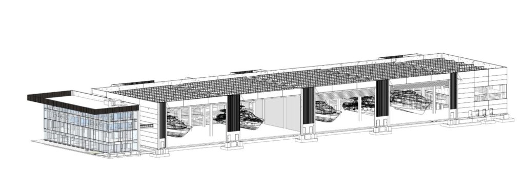 Le opere in progetto riguardano la realizzazione di due capannoni industriali, compresi nelle opere di ampliamento del complesso produttivo denominato Area 3, che permetterà alla società Sanlorenzo S.p.A. di soddisfare le proprie esigenze produttive. L’attuale polo produttivo D1, situato in fascia di riassetto fluviale ad alto rischio in caso di alluvione, verrà ricollocato nell’area protetta D2.