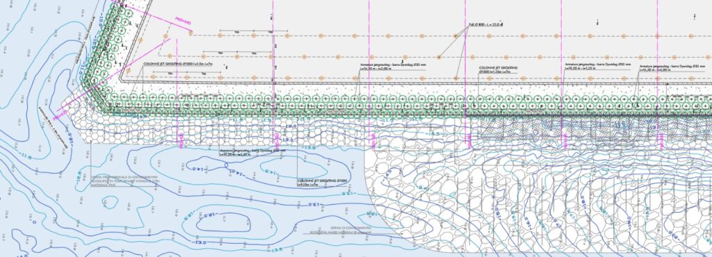 L’intervento consiste nella progettazione del tratto di banchina di levante del Ponte Eritrea che si sviluppa per 400 m, escludendo i 20,00 m in calata Massaua e i 20,00 m in radice (Lotto 3).