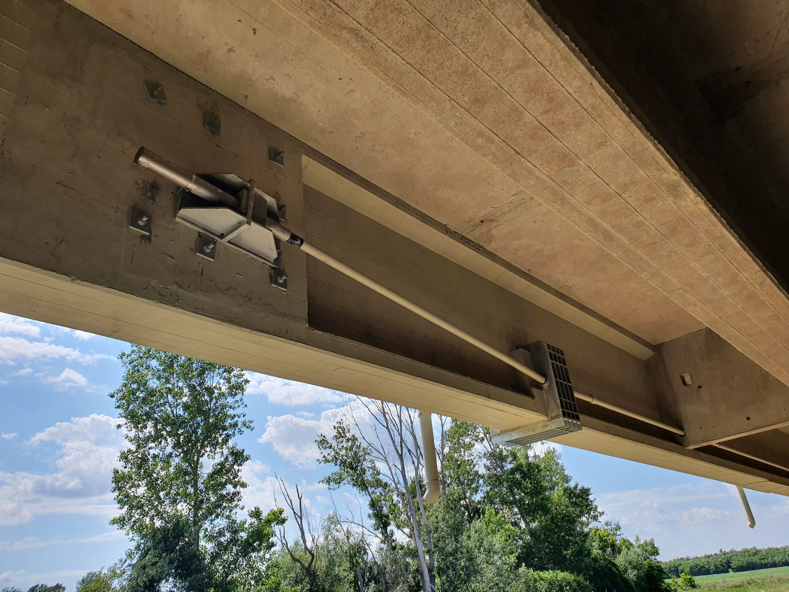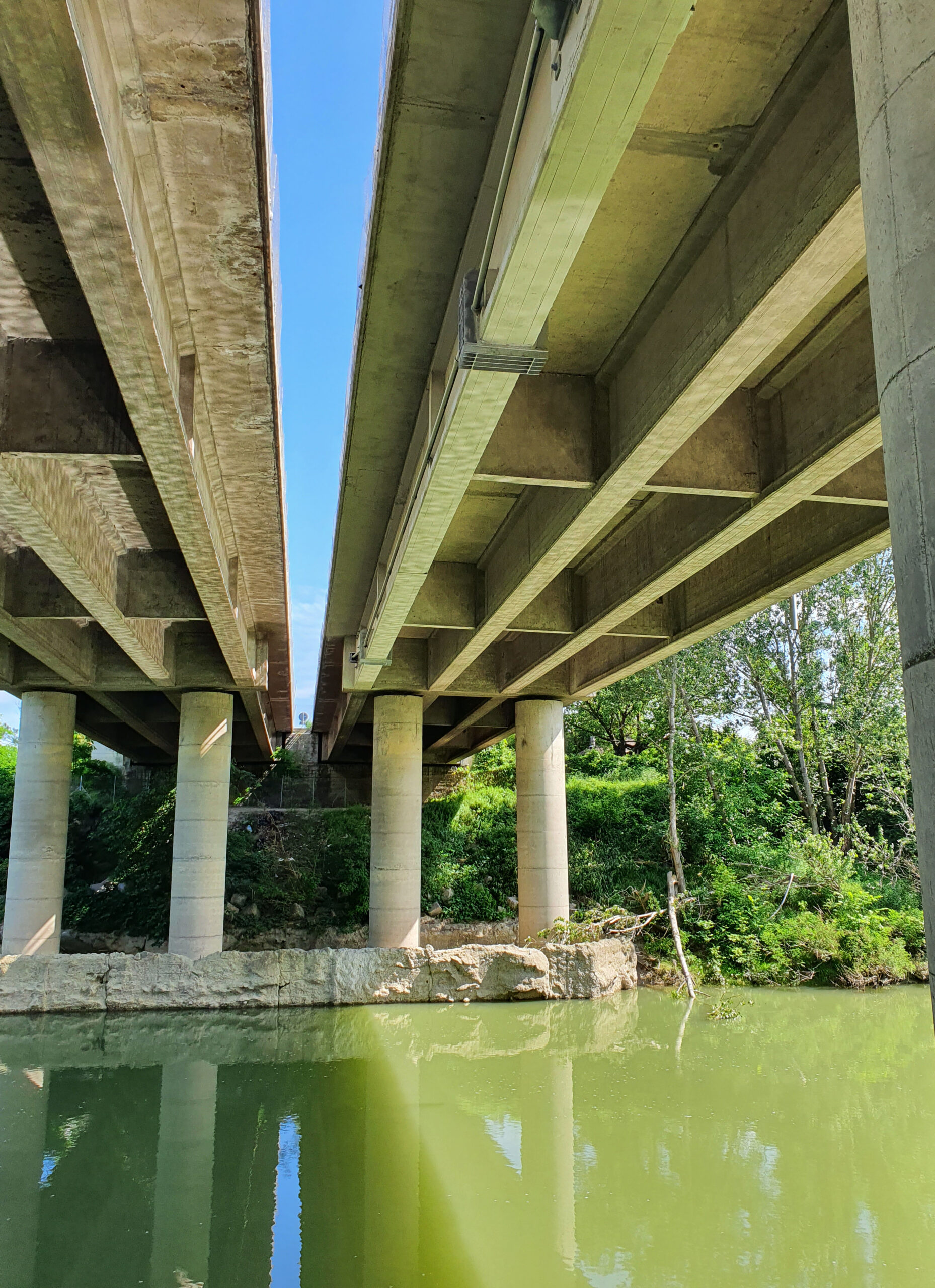 Le 4 travi in c.a.p. di altezza pari a circa 2,30 m poste ad interasse di 3,15 m sono collegate dai traversi di testata e dalla soletta prefabbricata di 24 cm di spessore: le travate delle campate adiacenti sono collegate mediante un getto di collegamento tra i traversi di testata. In corrispondenza dei giunti tra le lastre prefabbricate della soletta sono presenti dei percolamenti che hanno causato ammaloramenti sulla superficie esterna delle travi.